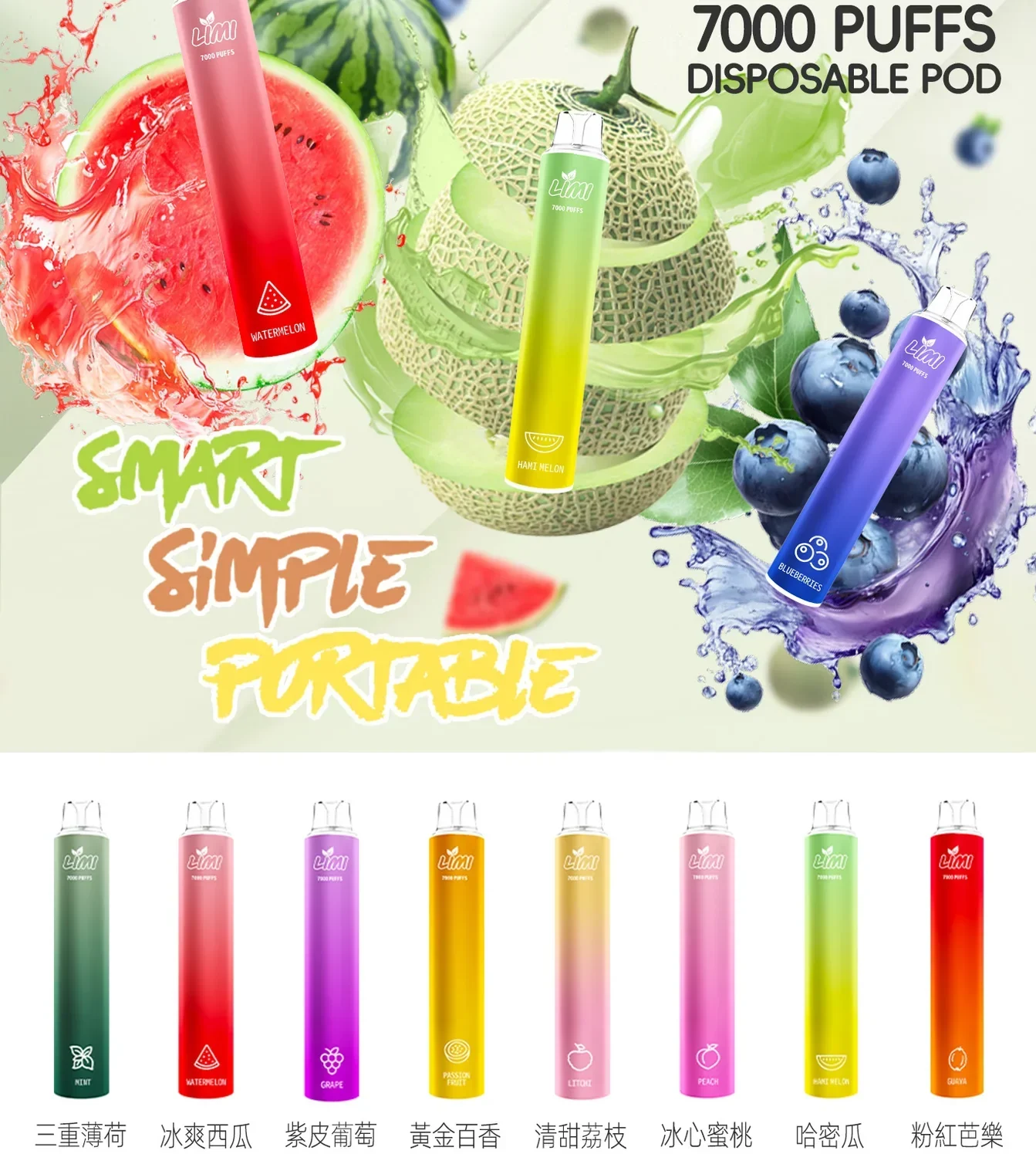 LIMI 7000口 抛棄式/一次性霧化棒 可充電電子煙