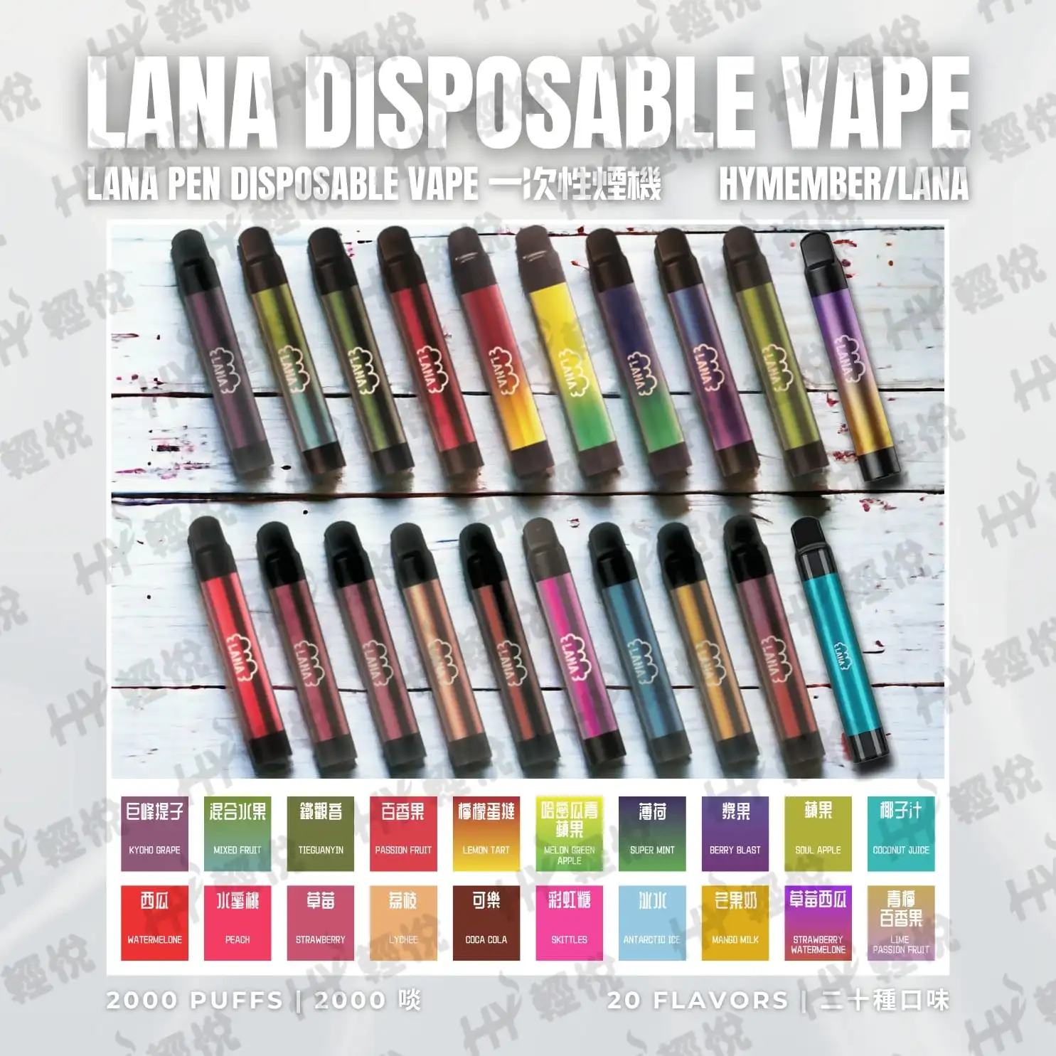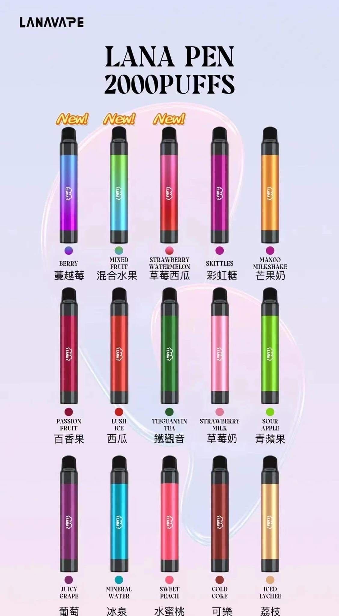 - 多種口味選擇: LANA 電子煙提供多種口味選擇,從經典的煙草口味到清新的水果口味,滿足你的不同喜好。