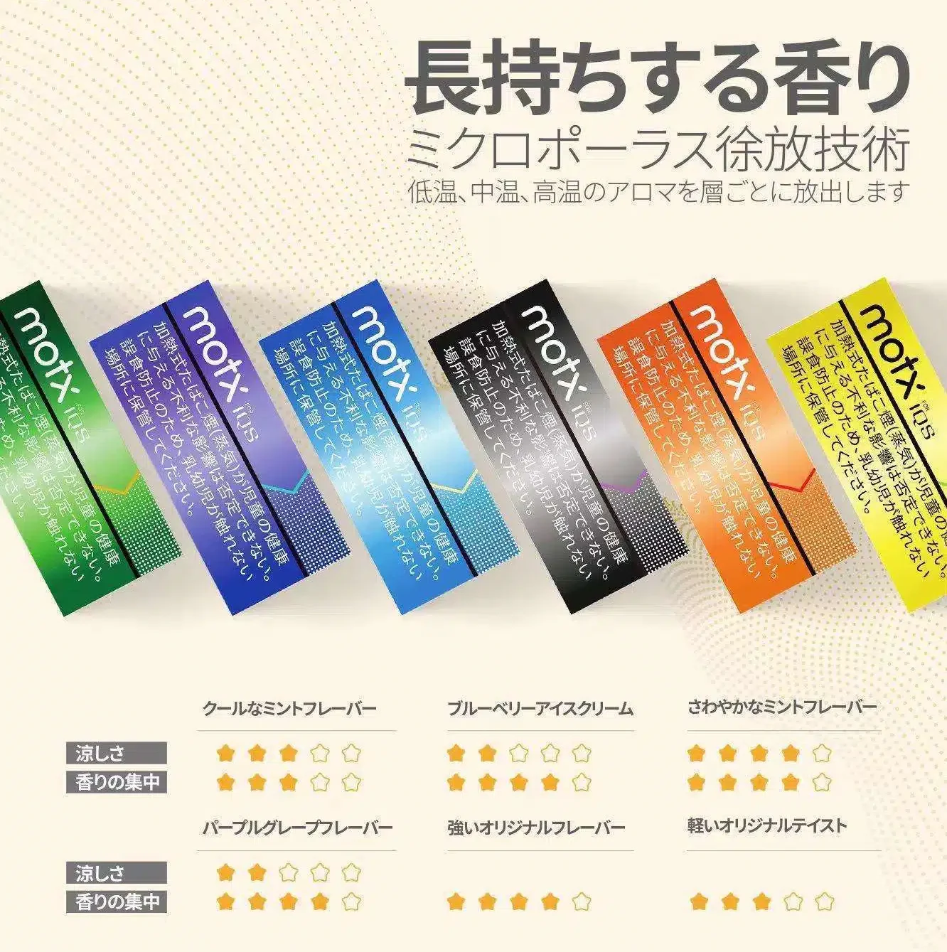 MOTX提供多種口味選擇,包括經典的煙草、清新的薄荷、水果混合等,滿足不同用戶的口味喜好。無論您偏愛濃郁的煙草香氣,還是清新爽口的薄荷味,都能在 MOTX 加熱煙中找到適合您的口味。